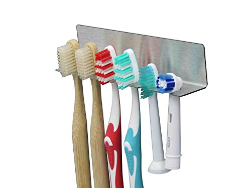 Zahnbürstenhalter aus Edelstahl für 4 Zahnbürsten, Handzahnbürsten, Aufsteckbürsten bis zu 4 Plätzen
