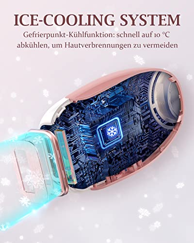 【Kühlfunktion】 Dieses verbesserte IPL geräte haarentfernung laser verfügt über eine eingebaute 10℃(50℉) Eisschicht, die die Haut abkühlt, während Lichtimpulse zur effektiven Haarentfernung abgegeben werden, wodurch Hautverbrennungen effektiv vermieden und eine schmerzfreie Haarentfernung erreicht wird.