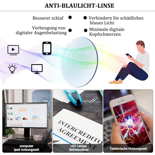 Anti-Blaulicht-Linse: Besoffen Licht blockieren Brille Schützen Sie Ihre Augen vor schädlichen UV-Strahlen und Blaulicht ab. Der Blaufilter im Brillenglas verhindert Blendung, Ermüdung, Kopfschmerzen und trockene Augen, die durch kurzwelliges blaues Licht verursacht werden.