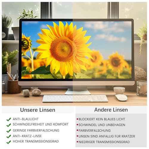 Anti-Blaulicht-Linse: Besoffen Licht blockieren Brille Schützen Sie Ihre Augen vor schädlichen UV-Strahlen und Blaulicht ab. Der Blaufilter im Brillenglas verhindert Blendung, Ermüdung, Kopfschmerzen und trockene Augen, die durch kurzwelliges blaues Licht verursacht werden.